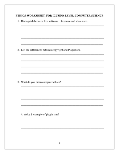 Computer Ethics Worksheet Igcse O Level Computer Science Teaching Resources